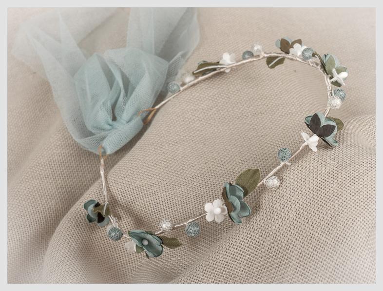 Corona flores para Comunión y Ceremonia ZOYSAN verde agua 20351