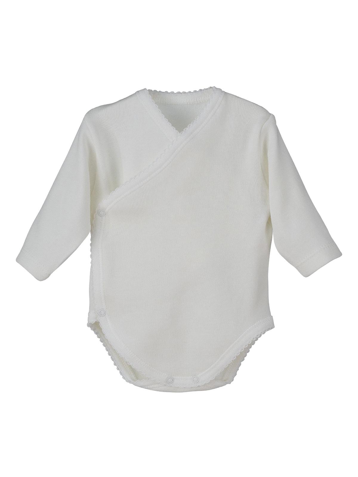 Body para bebe cruzado y abierto por la parte delantera de la marca Calamaro, confeccionado en algodón térmico de muy alta calidad, esta disponible en blanco, crudo, celeste y rosa. FABRICADO EN ESPAÑA.