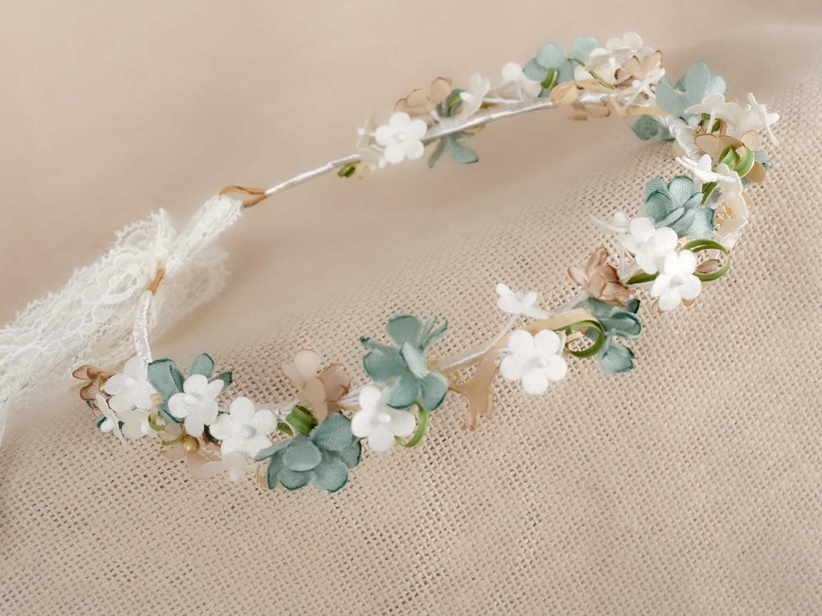 Características de: Corona flores para Comunión y Ceremonia ZOYSAN verde agua 20365