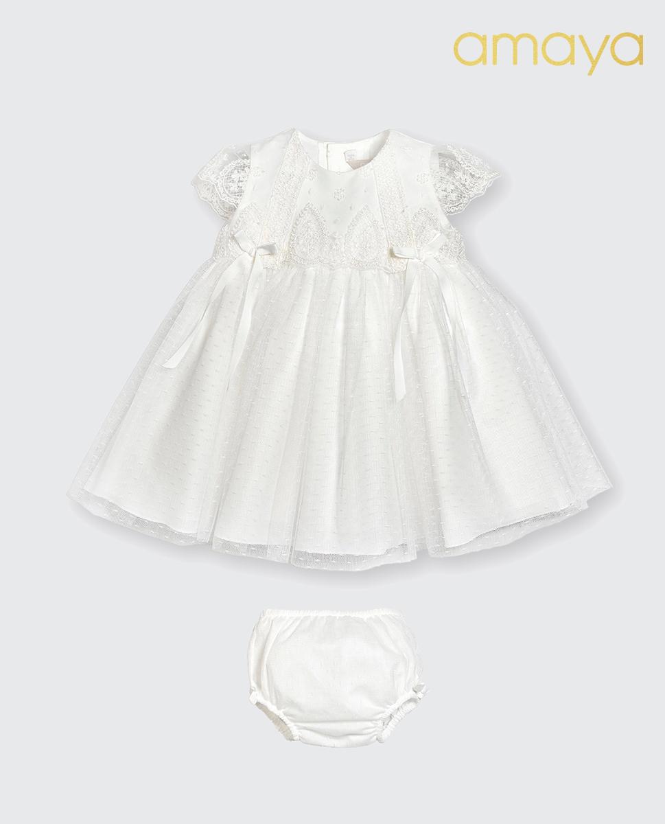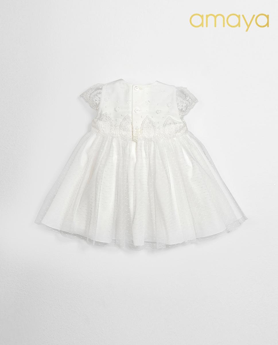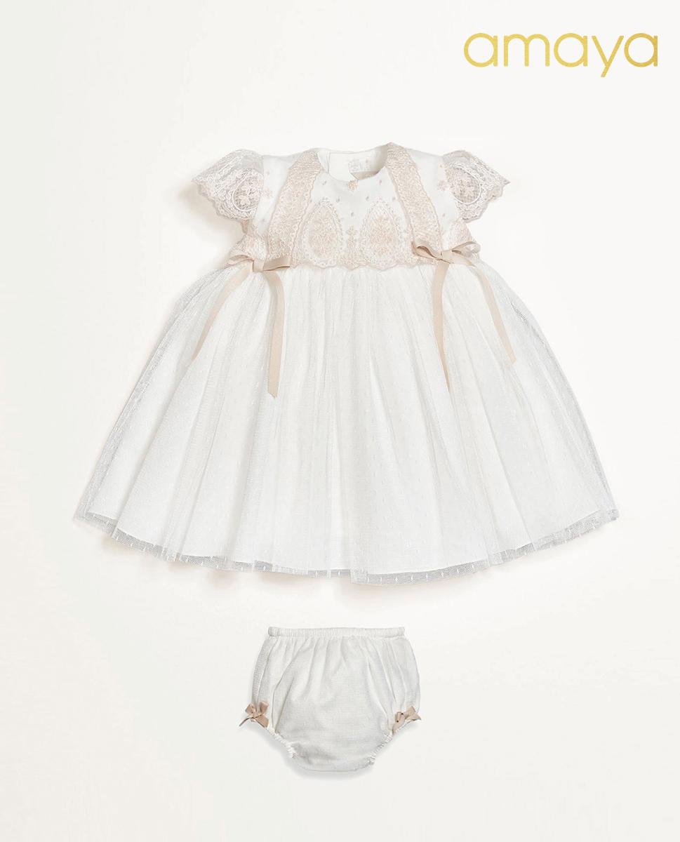 Vestido con braguita de bautizo de Amaya Fashion for kids para bebe niña modelo 632104 de la nueva colección Huve.