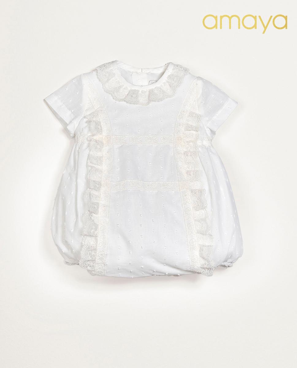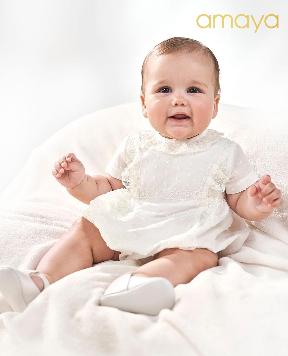 Clásico y espectacular pelele para bautizo de la firma premium Amaya Fashion for Kids, modelo 632153 lo podemos encontrar en nuestra colección de bautizo, confeccionado con plumeti de algodón, a su vez decorado con diferentes bordados, puntillas y lazos. FABRICADO EN ESPAÑA.