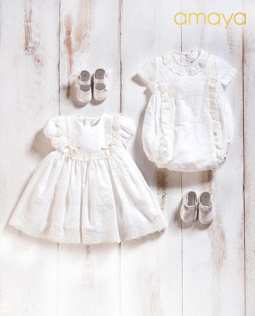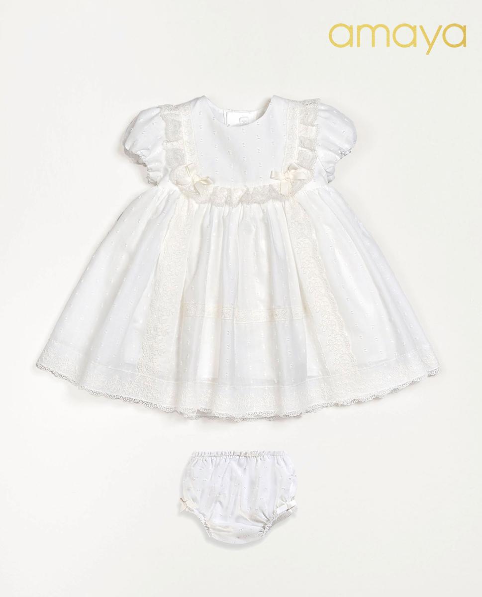 Vestido con braguita de bautizo de Amaya Fashion for kids para bebe niña modelo 632154 de la nueva colección Romantic Roses.