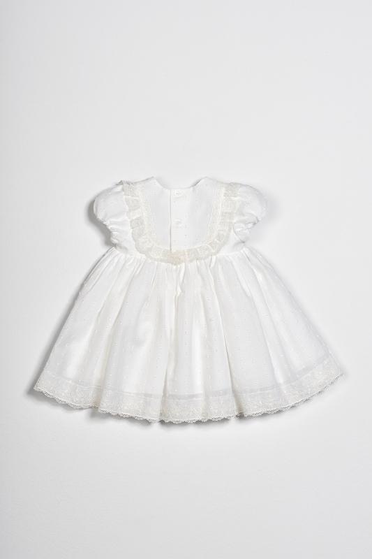 Precioso vestido de bautizo para bebe niña de manga corta, fabricado con tejidos de muy alta calidad donde destaca la pluemti de algodón con bordado va forrado para darle mucho más vuelo y volumen, además se puede completar con capota o turbante a juego. FABRICADO EN ESPAÑA.