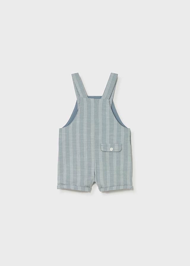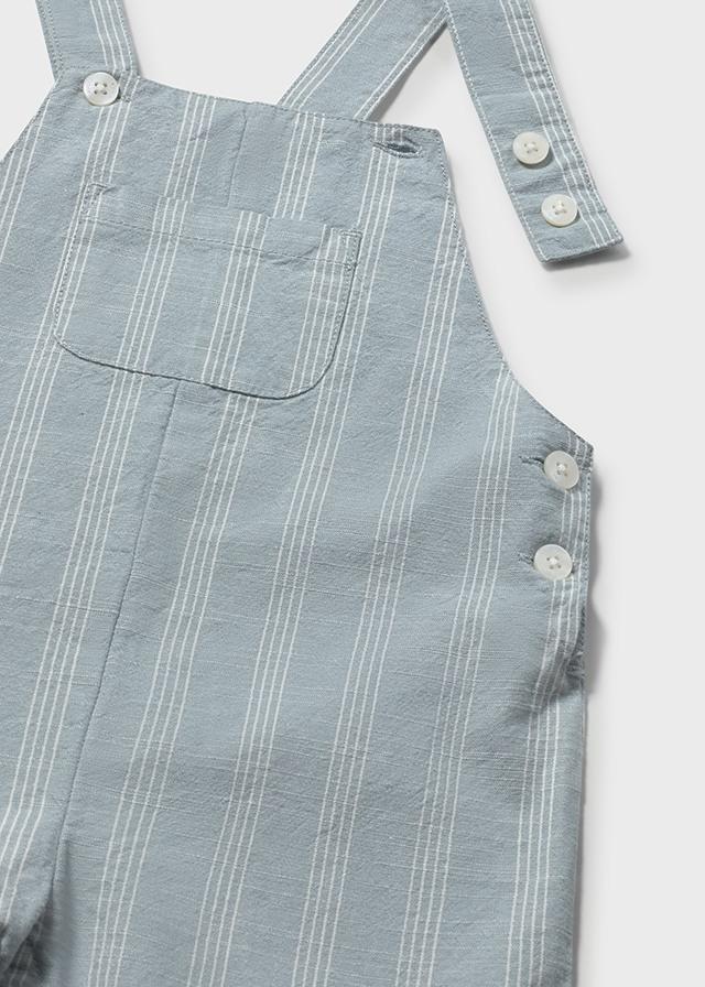 Bonito y cómodo peto corto para bebe niño confeccionado en fresco tejido de algodón con viscosa y lino de rayas, es un peto que será perfecto tanto para el día a día como para llevar más elegante a nuestro bebe.
