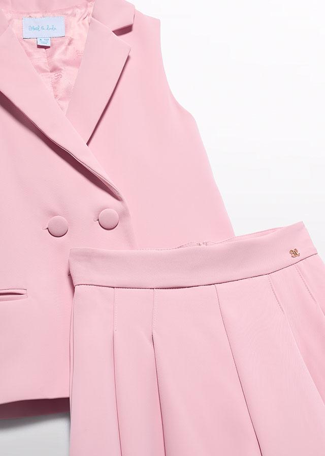 Precioso y elegante conjunto para adolescente para ceremonia que se encuentra dentro de la nueva colección de Abel y Lula modelo 26-05287-040 para esta primavera verano 2026, confeccionado en crepe de alta calidad de color rosa.