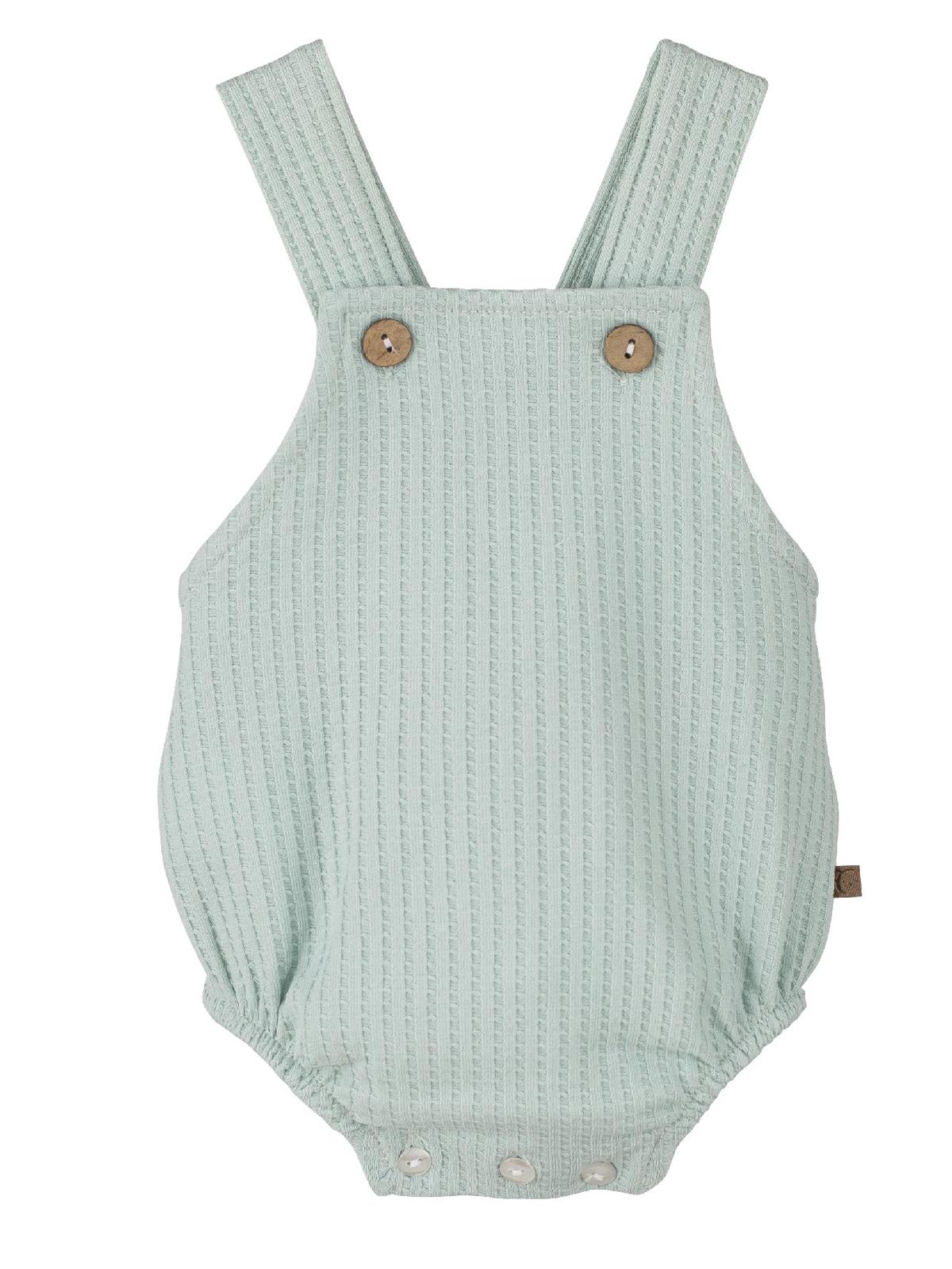 Precioso y muy cómodo peto de tirantes confeccionado en algodón elástico y labrado de muy alta calidad en color verde mint, viene presentado en caja para regalo, es una prenda que tenemos dentro de nuestra colección de ropa para primera puesta recién nacido.