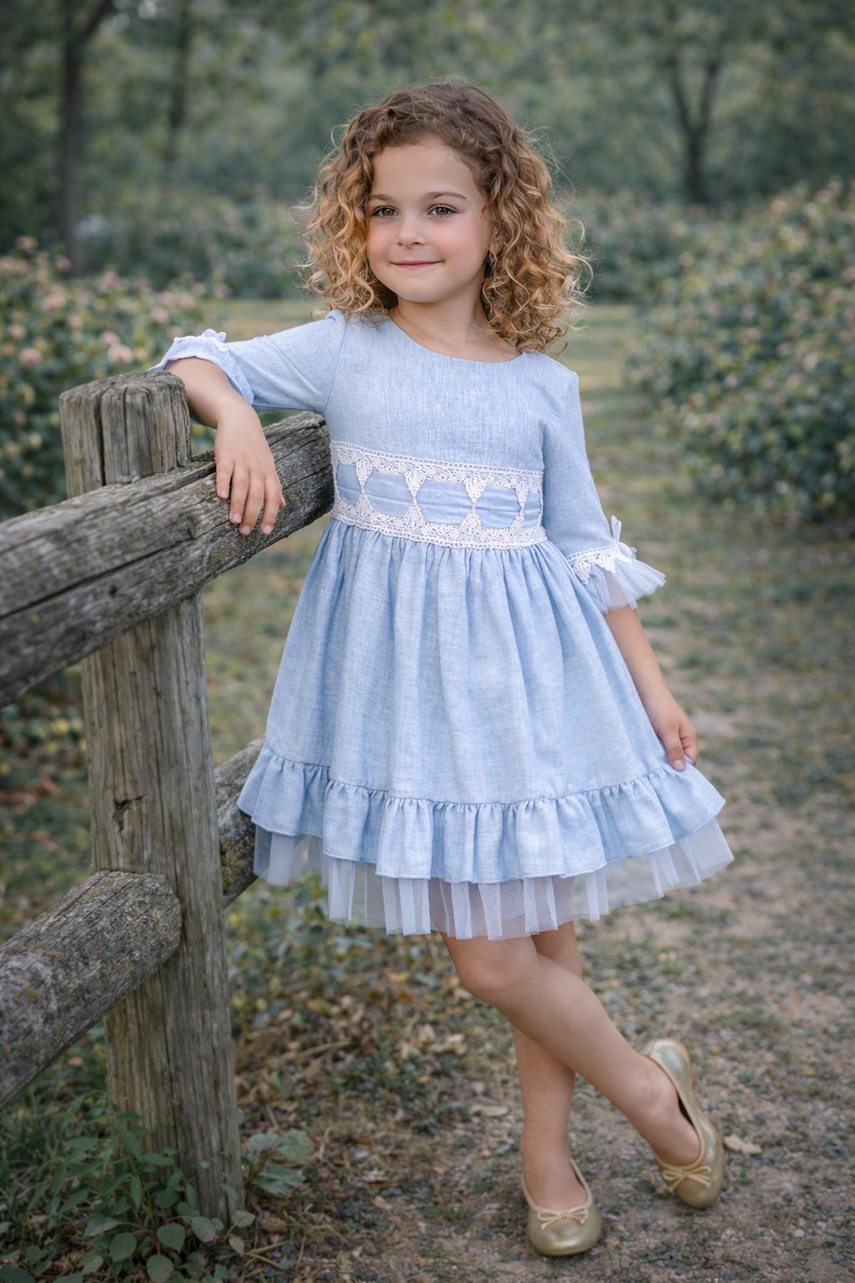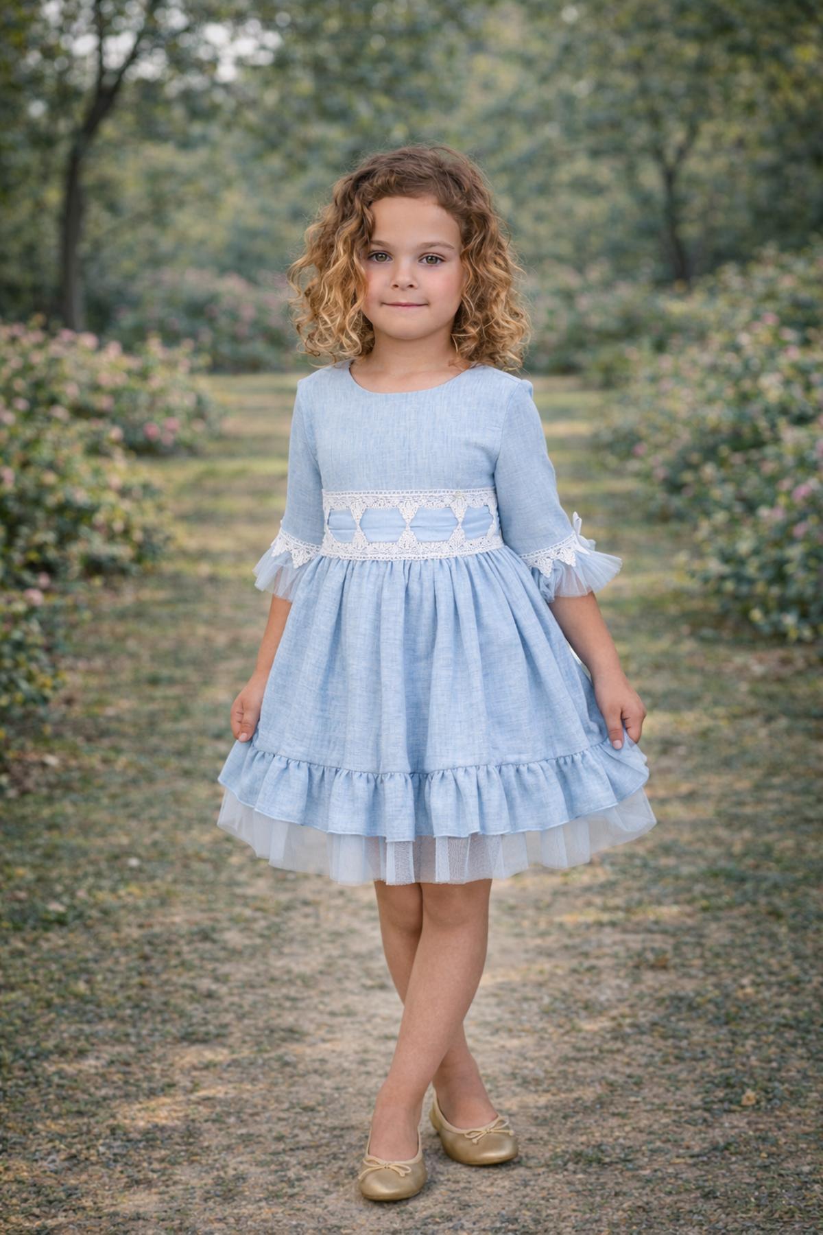 Vestido de media manga niña NEKENIA azul con tul 2621829